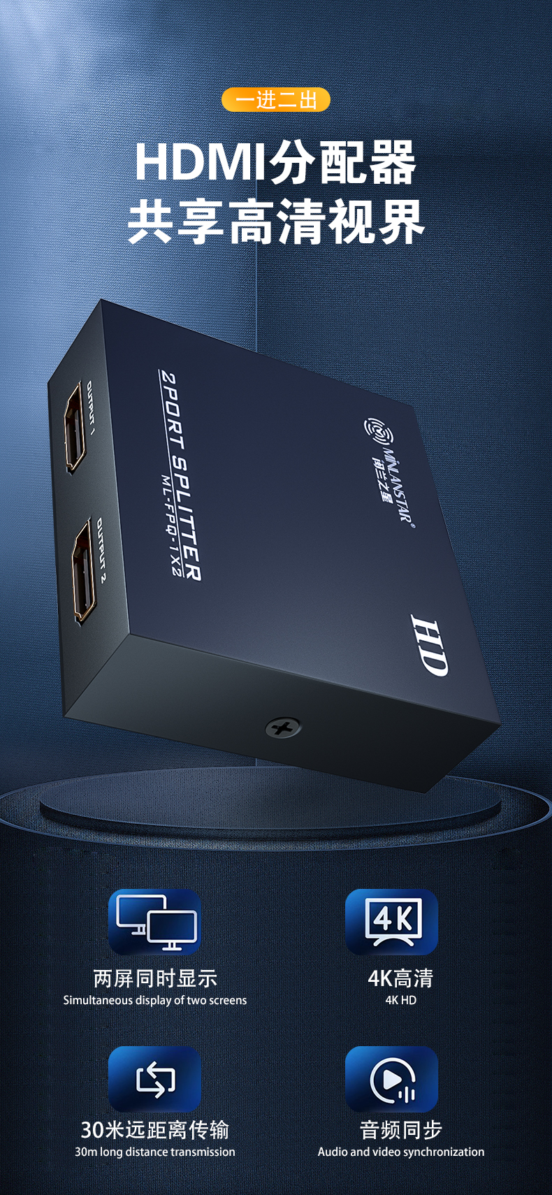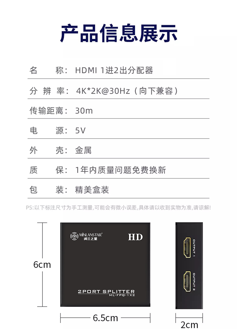 HDMI分配器1分2	ML-FPQ-1*2